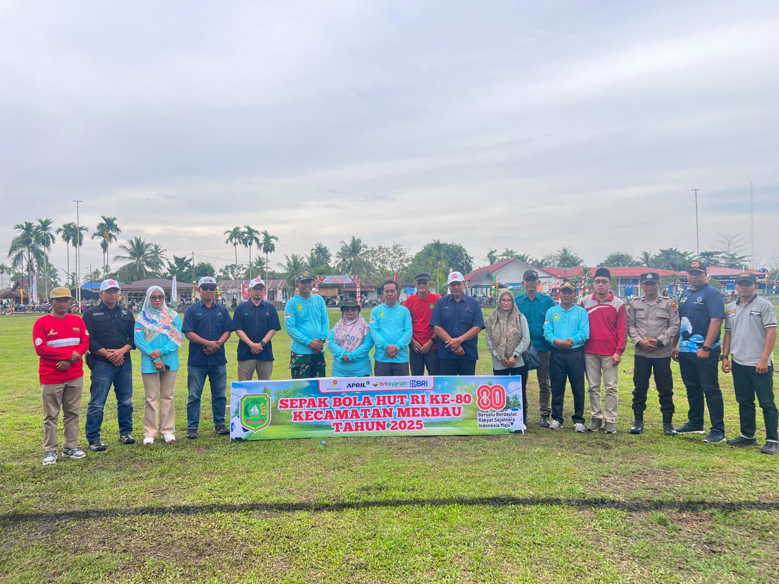 Camat Merbau, Hj. Wan Jumiati SE MSi mengucapkan terima kasih serta mengapresiasi kepada panitia penyelenggara dan PT. ITA (Imbang Tata Alam) yang sudah tiga tahun berturut-turut sebagai sponsor tunggal untuk sepak bola dalam rangka memeriahkan HUT RI Ke-80 di Kecamatan Merbau.