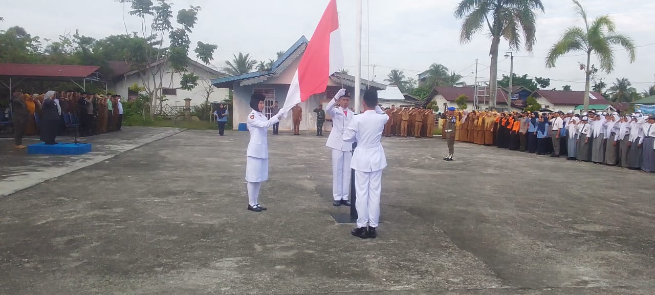 Upacara dimulai pukul 07.30 Wib bertindak sebagai Inspektur Upacara Camat Merbau Hj. Wan Jumiati SE MSi dalam amanatnya membacakan teks pidato Menteri pemuda dan olahraga, menyampaikan pesan penting tentang semangat persatuan dan kebangsaan.