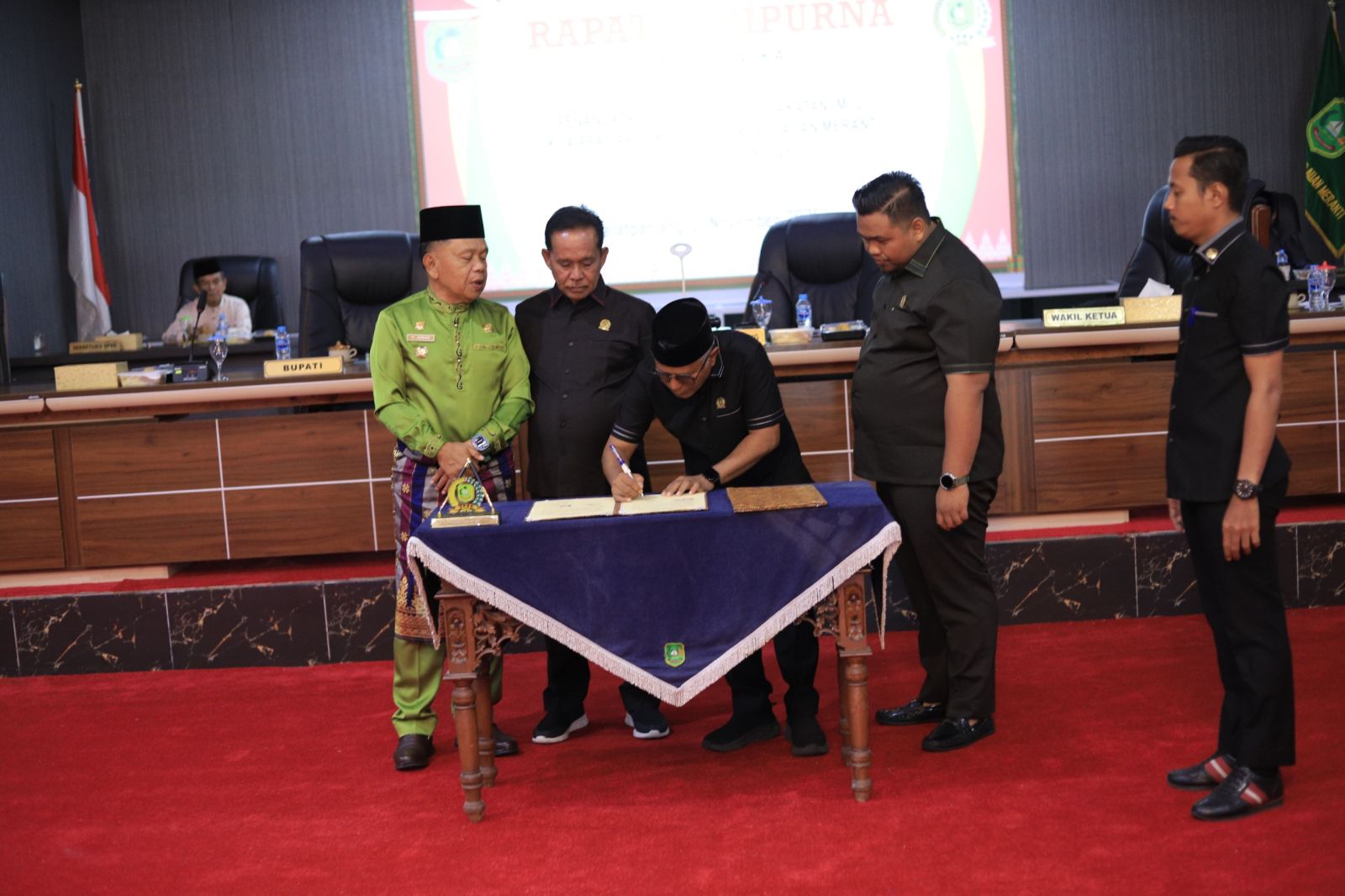 Agenda ini berlangsung dalam Rapat Paripurna Ke-enam Masa Persidangan Pertama Tahun 2025 di Balai Sidang DPRD Kepulauan Meranti. Suasana rapat berjalan khidmat ketika Bupati Kepulauan Meranti, AKBP (Purn) H. Asmar, bersama Ketua DPRD H. Khalid Ali SE, membubuhkan tanda tangan sebagai persetujuan bersama terhadap dokumen KUA-PPAS.