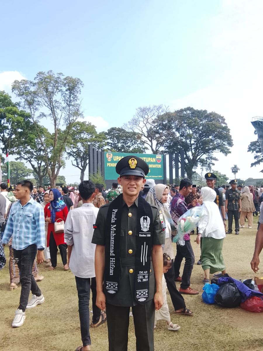 Alhamdulillah berkat Do'a orang tua serta keluarga yang senantiasa mensuport untuk putra saya Muhammad Hifzan yang saat ini sudah menyelesaikan Pendidikan TNI AD menyandang pangkat Prada.
