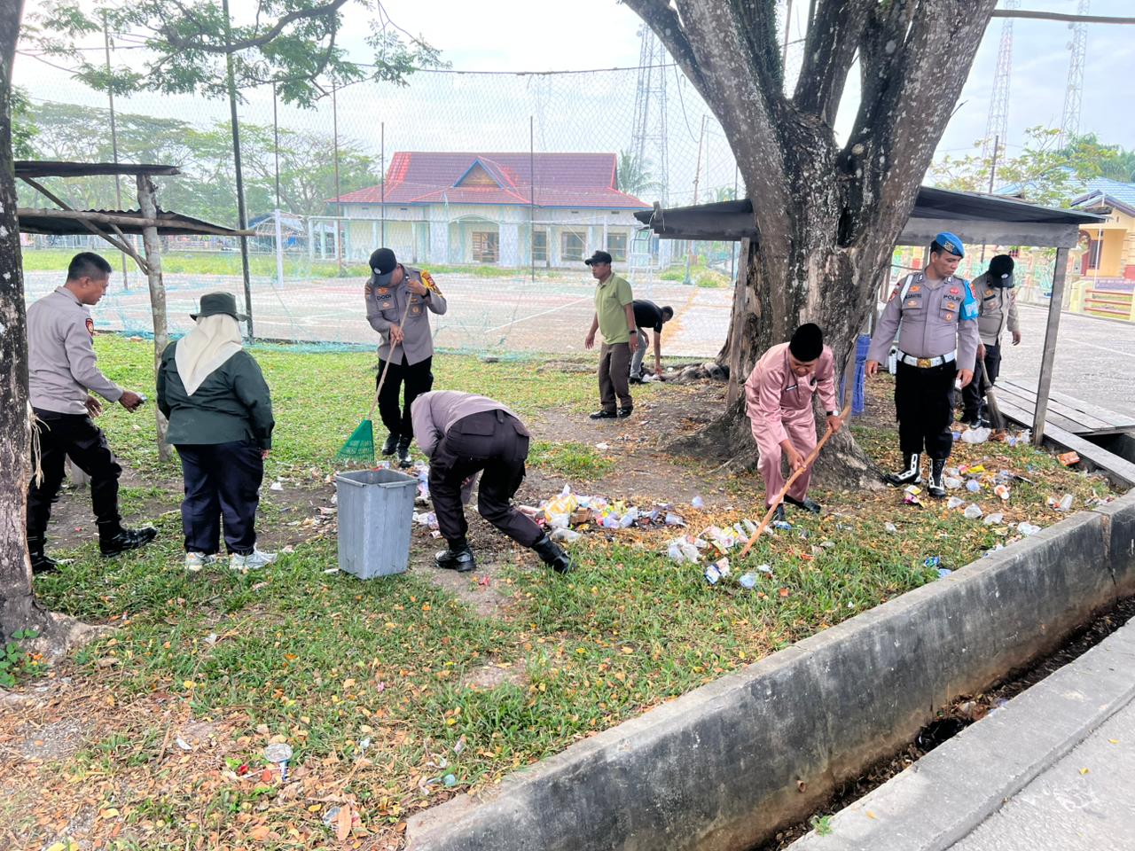 Kapolres Kepulauan Meranti AKBP Aldi Alfa Faroqi melalui Kabag SDM Polres Kepulauan Meranti Kompol Ali Azar ALI S.Sos Mengajak seluruh peserta untuk meningkatkan kepedulian serta kesadaran terhadap pentingnya menjaga kebersihan lingkungan.