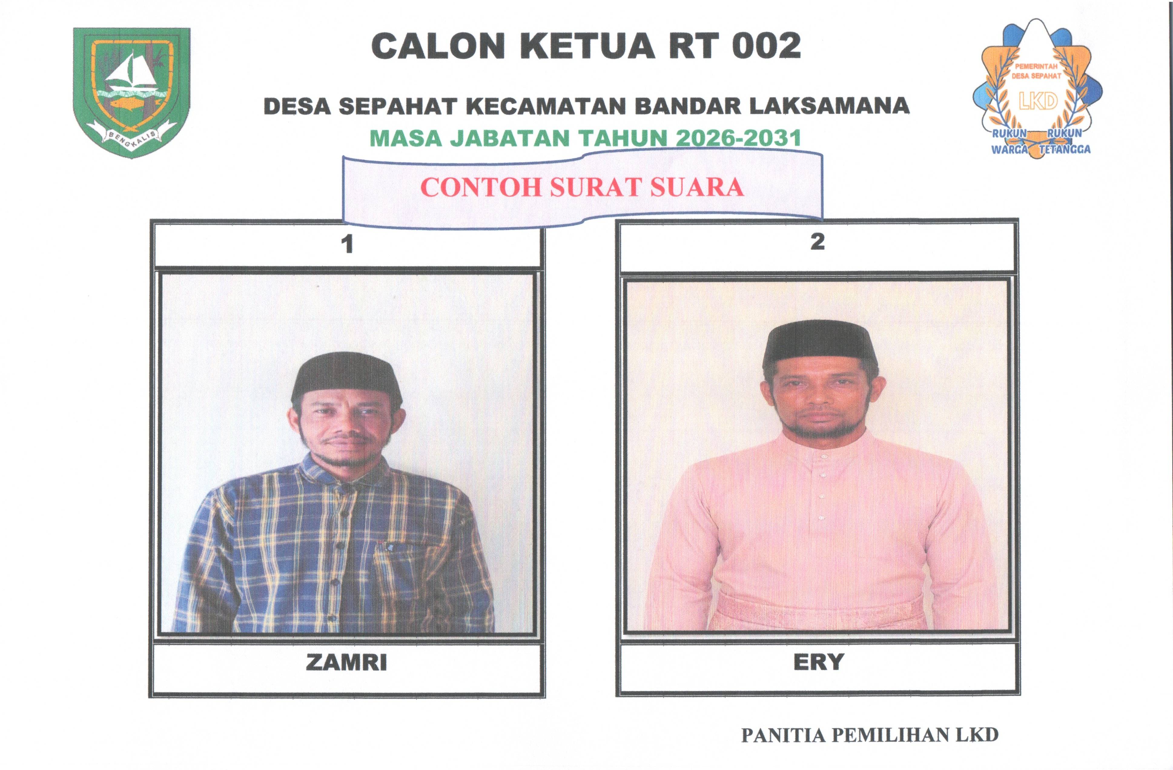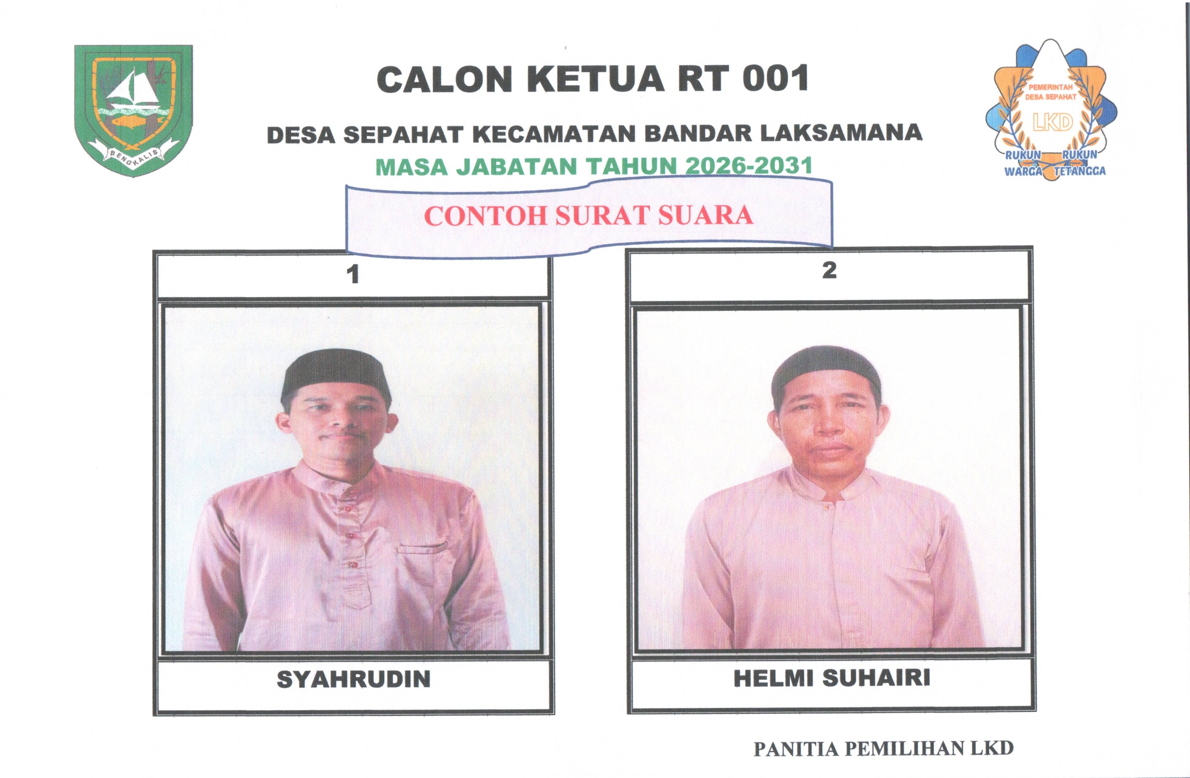 Selanjutnya, adapun perolehan suara pada pesta demokrasi pemilihan RT, RT 001 (Syahrudin : 47 suara dan Helmi Suhairi : 27 suara). RT 002 (Zamri : 47 suara dan Ery : 53 suara). RT 003 (Azlin : 75 suara dan Samsuri : 72 suara). RT 004 (Syafri : 51 suara dan Sapri : 93 suara)." Paparnya